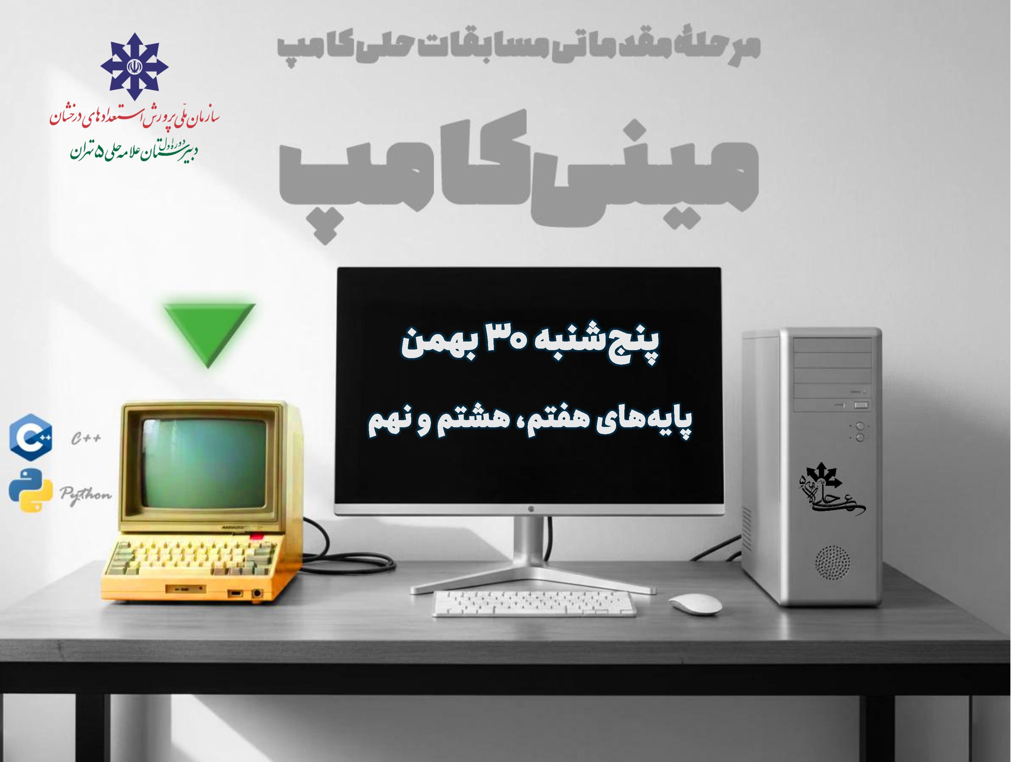 📣 مسابقات مقدماتی حلیکامپ امسال با عنوان مینیکامپ در دو مرحله بین دانشآموزان پایههای هفتم، هشتم و نهم مدرسه برگزار میگردد.